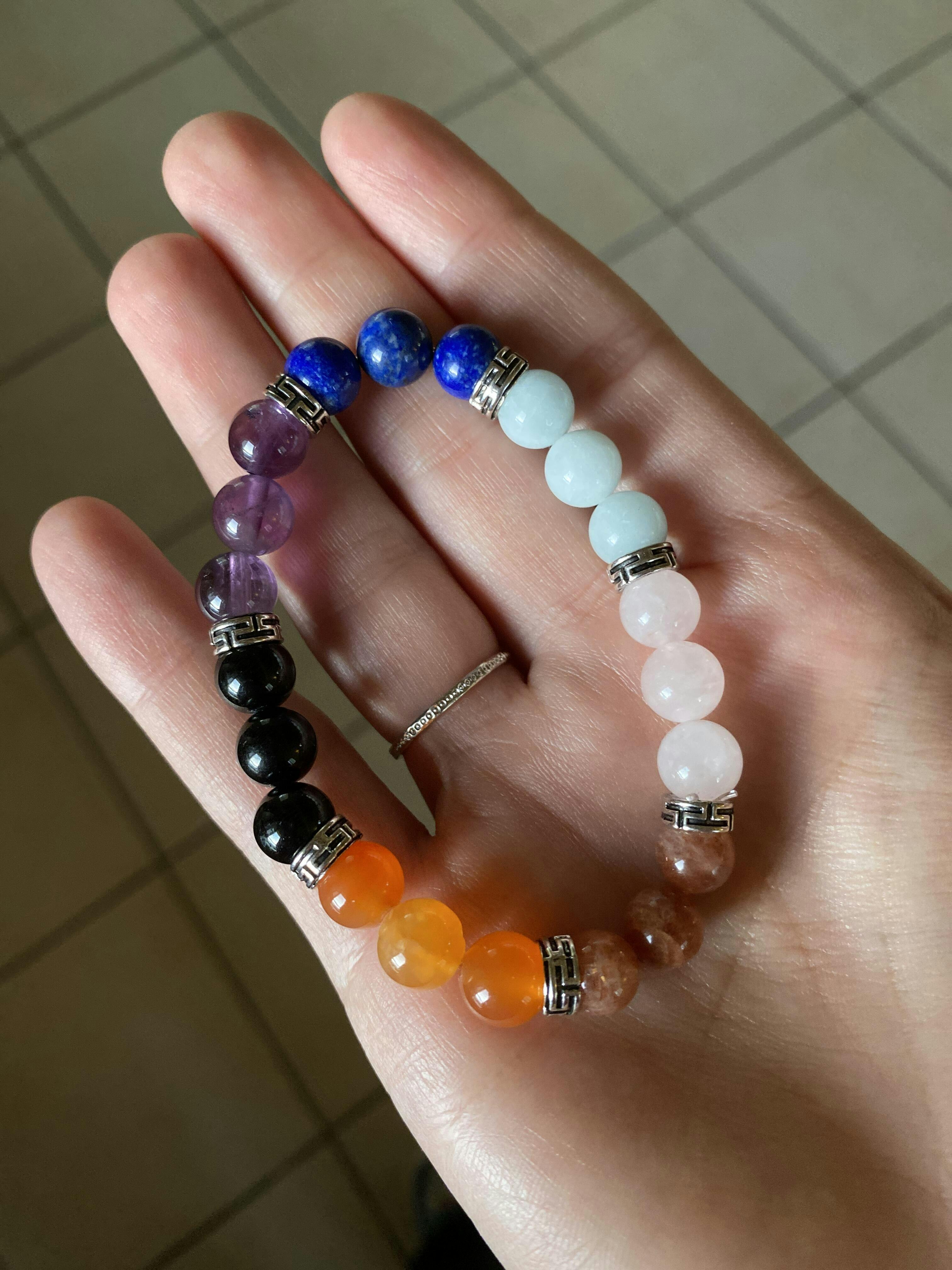 Bracelets de qualité, pierres magnifiques et du sur mesure! Que demander de plus. Je suis ravie 🩵💛🧡🩷