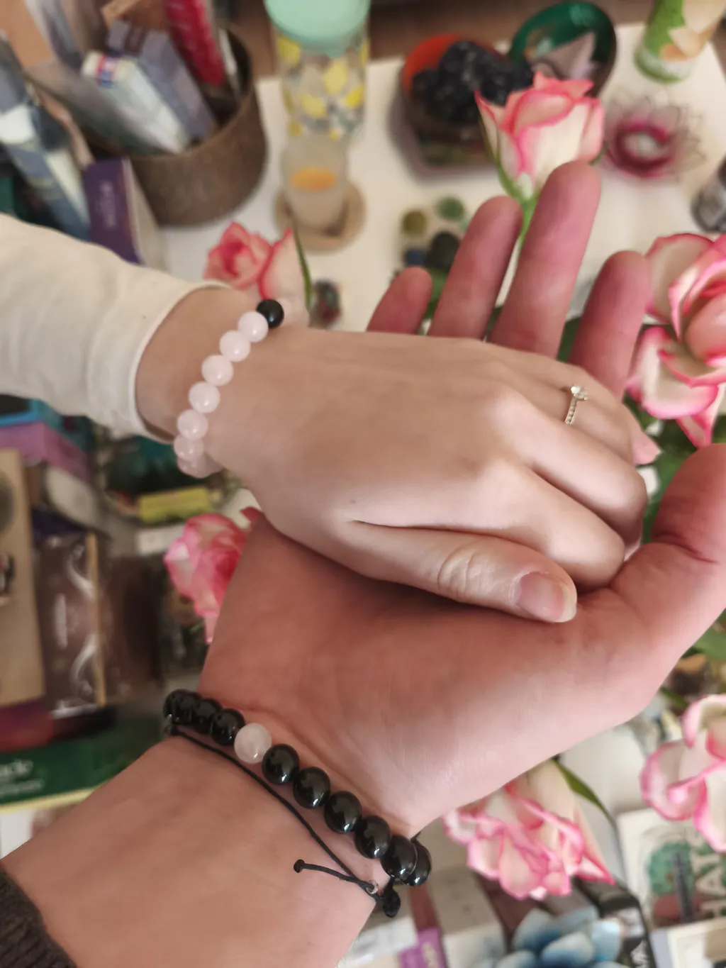 J ai demandé une création de bracelet couple en tourmaline et quartz rose et le résultat est sublime. Deux magnifiques cadeaux pour Noël. Je recommande la qualité des bracelets. La rapidité de l envoi et la gentillesse de la créatrice.