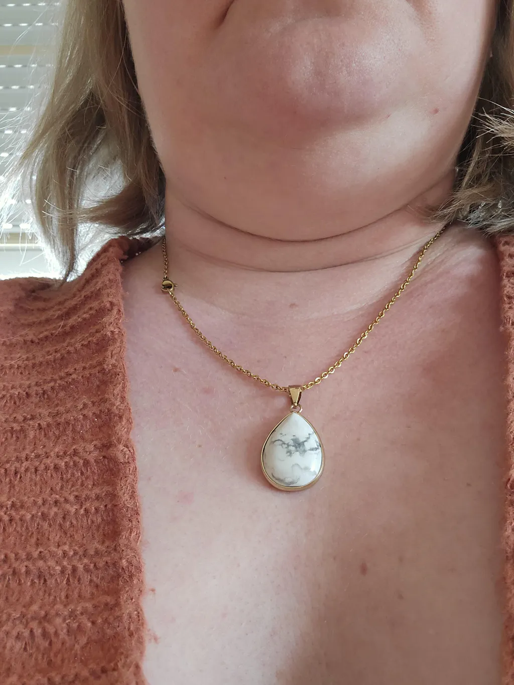 Je suis très satisfaite de ma commande. Avec le collier, qui se trouve dans une jolie pochette, se trouve une carte d'explication sur la pierre mais également comment la purifier et la recharger. La pierre est bien choisie et donc le collier est très beau.