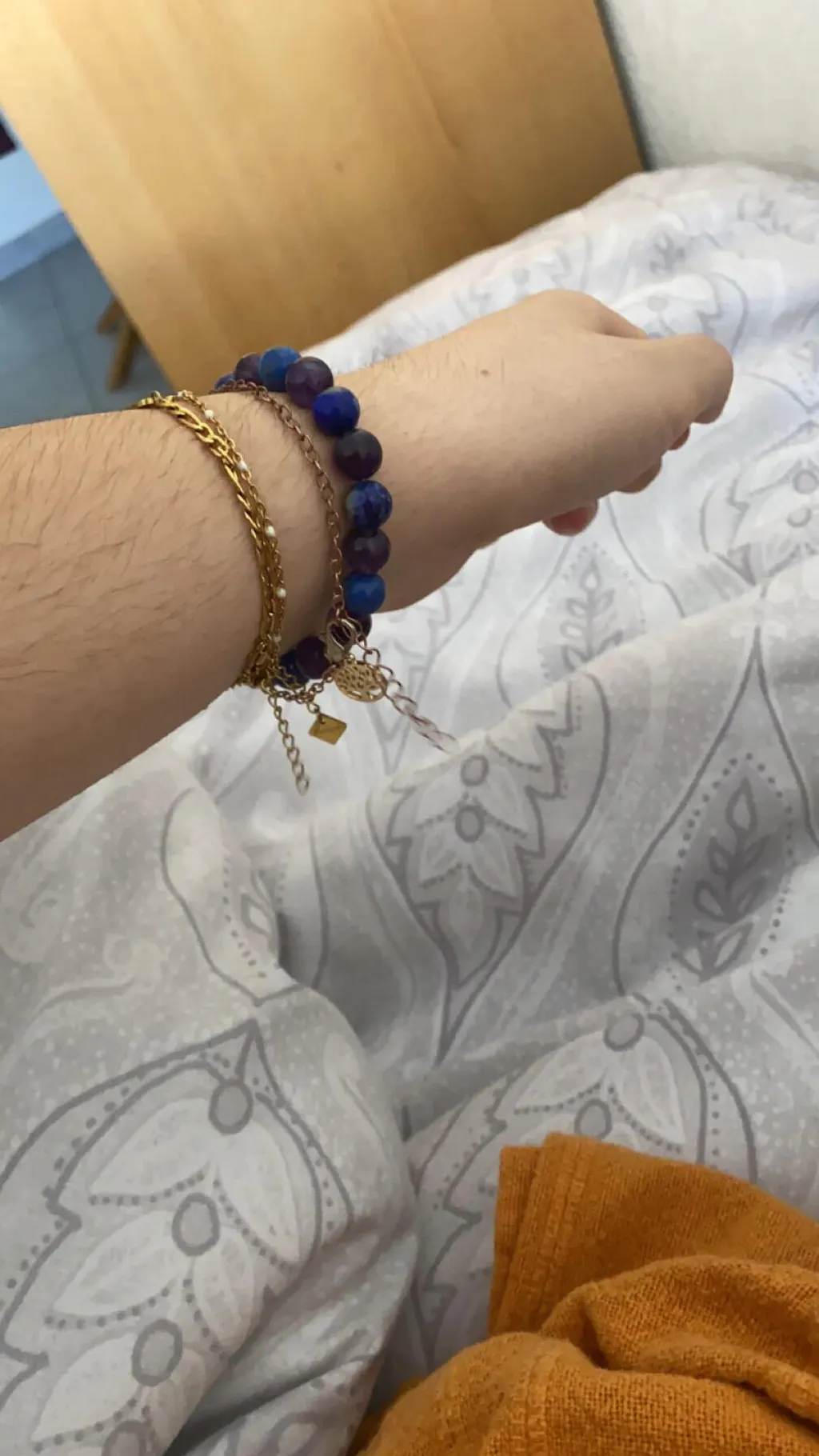 Matériaux utilisé : pierres naturelles, entreperles et breloques en acier inoxydables et/ou plaqué à l'or fin.